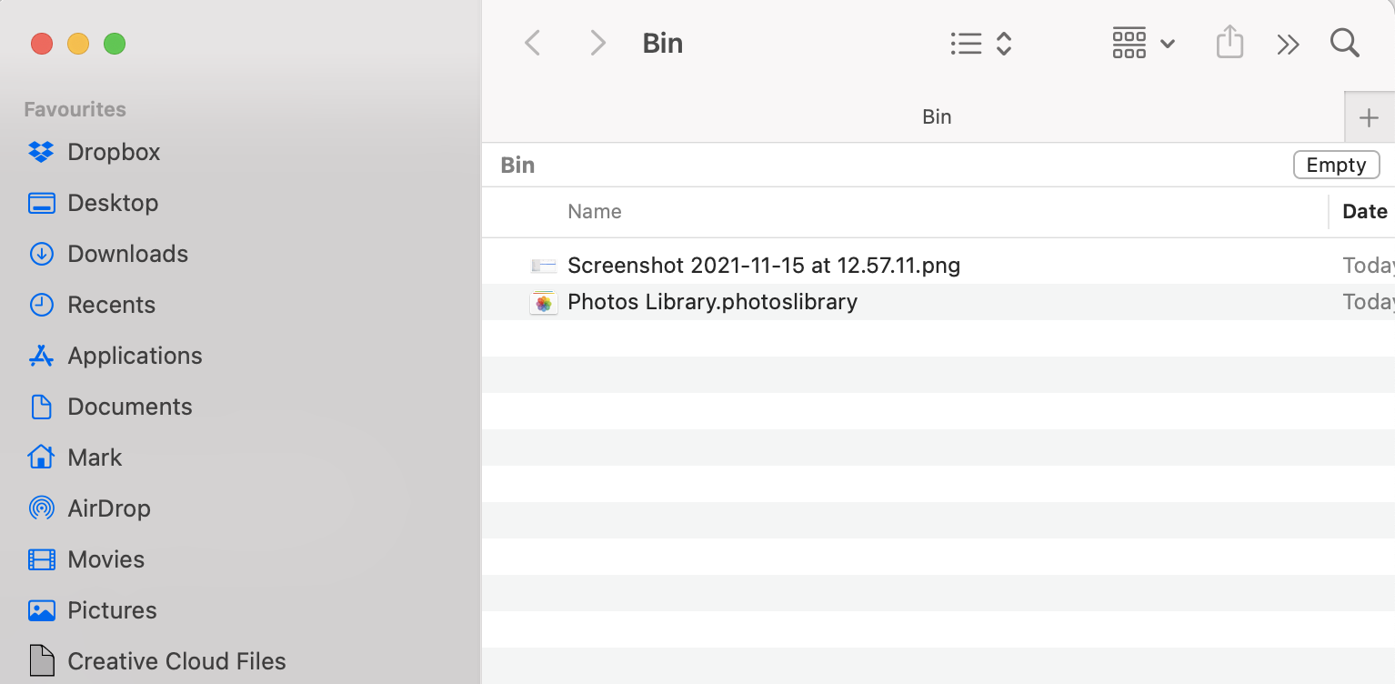 I have not been able to find a solution to this problem, just people answering "It is in the Bin because you put it there". That is not the case. It ends up in the Bin because there must be a bug in the Monterey OS.