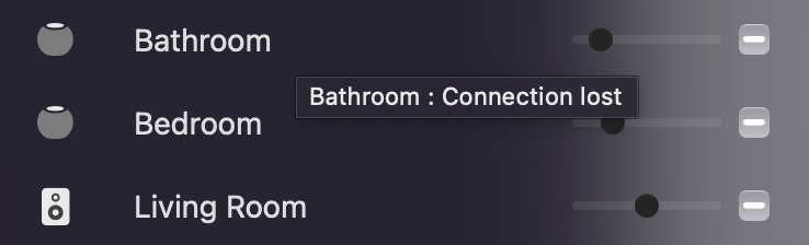 But after I airplay using my iPhone, and tried to switch back using iTunes on my Mac, when I click the airplay button, I can see that each devices will show a check mark for one or two seconds, although no sound actually playing, then the checkmarks would change to a white horizontal bar as appear in picture I posted in the original post.