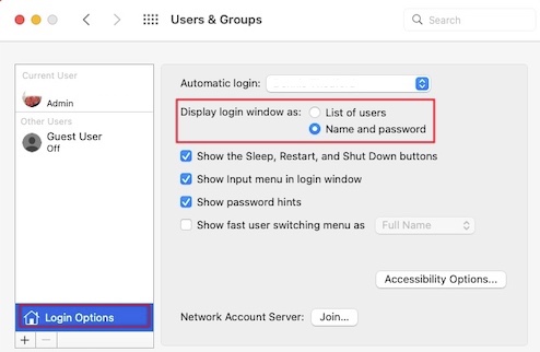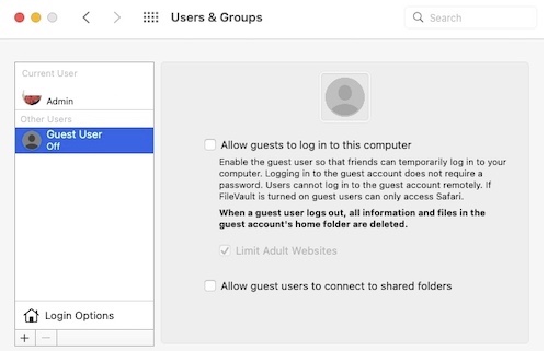 2. Why on my Macbook there's no guest user and only one user is displayed.