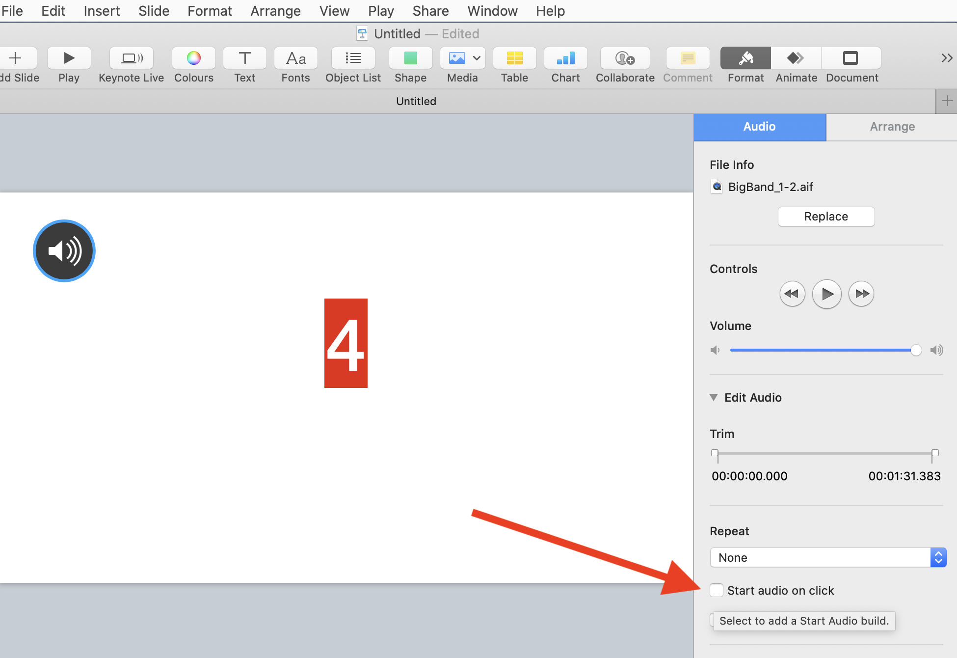 I've created a Keynote presentation consisting of 46 slides (designed using Canva Pro). I created 46 separate mp3 files to narrate those slides (using Audacity), and now I need to bring it all together. I can add each separate mp3 to each separate slide, but I need to have those narratives play automatically, because I'll be hosting the course on Teachable, and I don't want my students to have to click a separate link to play each individual audio file. Can any one point me in the direction of a concise tutorial to show me what I need to do? The help files on Keynote weren't specific enough, and those on Teachable were way to general to be helpful. Thank you so much for helping!