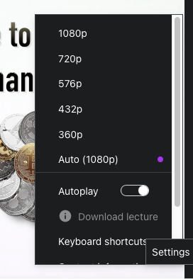 I just purchased a course on Udemy and I can only see and hear the first video, all the other videos after the first one I can only hear it not see the actual video. I notice on the first video when I click on the little gear at the bottom I have options for video like 1080, 720 ect but on the rest of the videos I see Auto that had been selected and I am unable to deselect it. The first attachment is of the first video and the second attachment is of the other video that follows.