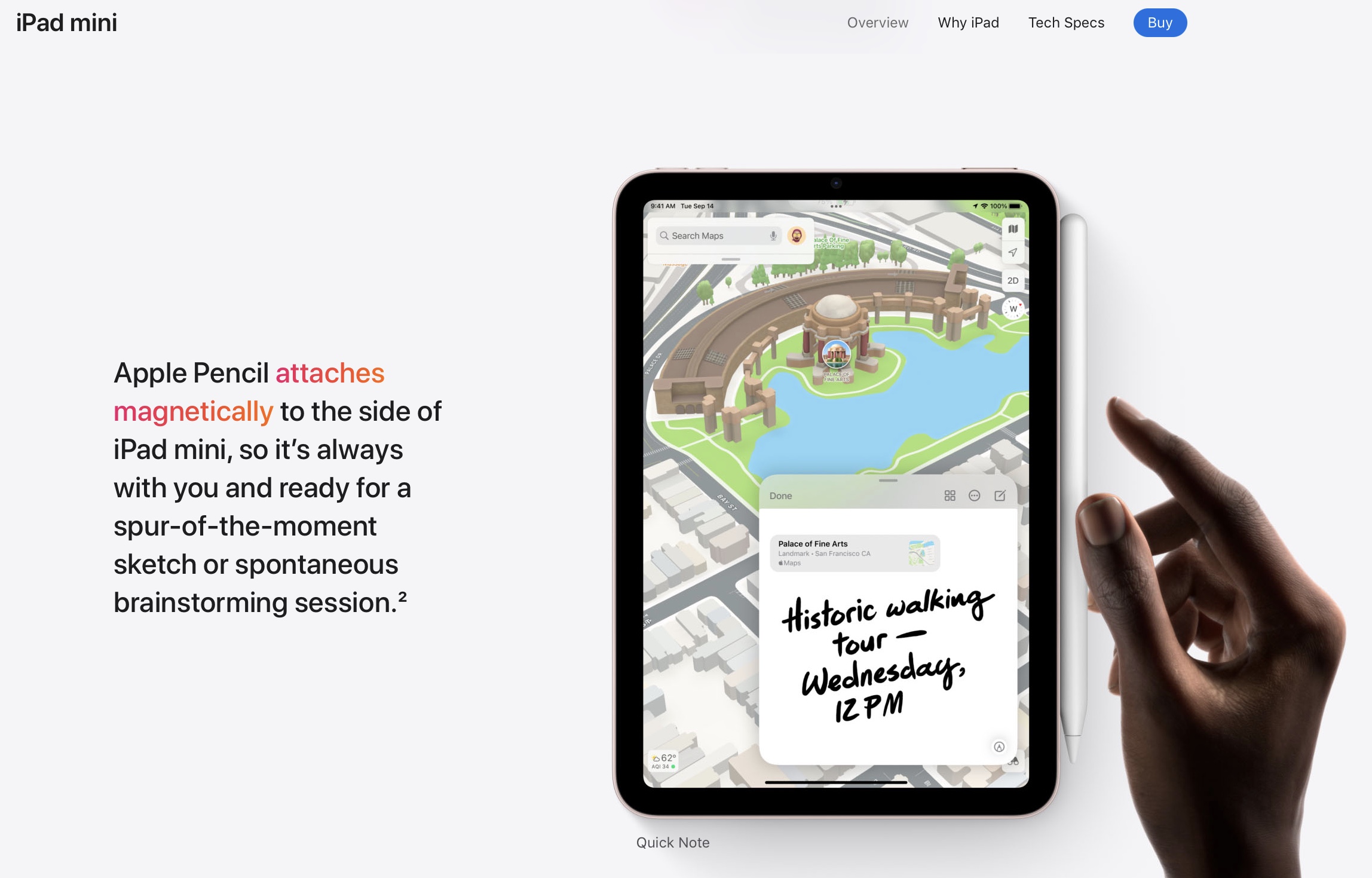 Tne new iPad Mini 6th gen uses the latest 2nd gen Pencil as it magnetises and charges along one of the long sides of this iPad model, as clearly shown here.