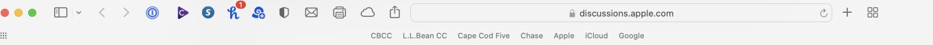 Right now the favorite bar shows only the name of the bookmark. I know that I had icons at some time in the past, but having to force quit Safari 15.1 recently, the favorite bar now only displays the name. I searched and could not find a solution that works so far. If I click on the + icon to the right of the search bar, is shows the Favorites as icons. I even went so far as to delete the bookmark icon cache as some suggested and all that did was delete all the bookmark icons. There must be a simple way to restore the favorites bar so it shows only icons. I have no idea why there isn't an option to show as icon, name, or icon and name. That is probably asking too much and right now I would be satisfied with just the icons.