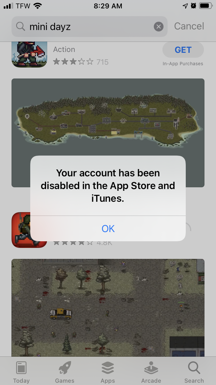 If you see a message that says "Your account has been disabled in the App Store and iTunes", or "You cannot login because your account has been locked" (it points to the same document), click here and read what to do ➞ https://support.apple.com/HT208856