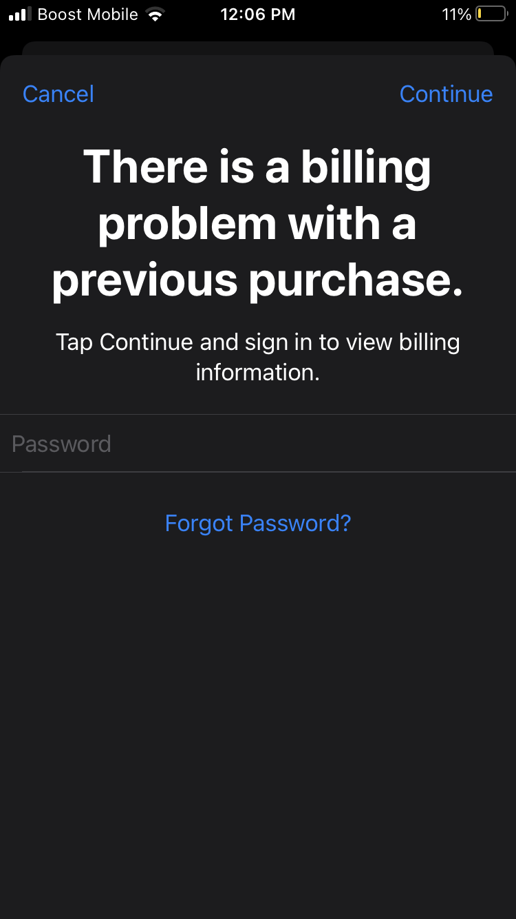 "There is a billing problem with a previous purchase." = "you have an unpaid balance in the App Store or iTunes Store"