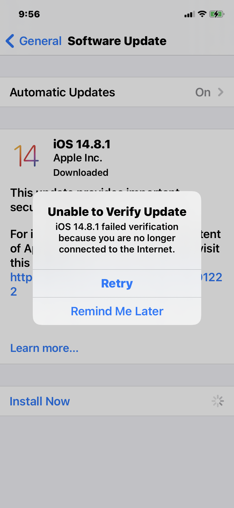 I have tried numerous times to update this version and I keep getting the error message "Unable to verify update iOs 14.8.1 failed verification because you are no longer connected to the internet" however, I am on the internet! My phone is an Xr