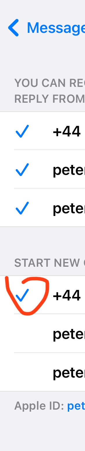Then in Settings, Messages, Send & Receive, ensure only your phone number is selected as Start new messages.