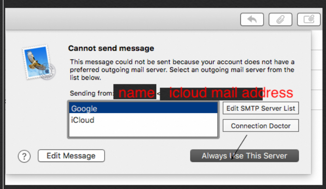 On my Mac, I can no longer send from one of my iCloud accounts.
