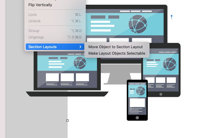 Have you tried the "Move object to section Layout" menu item shown in your screen shot?