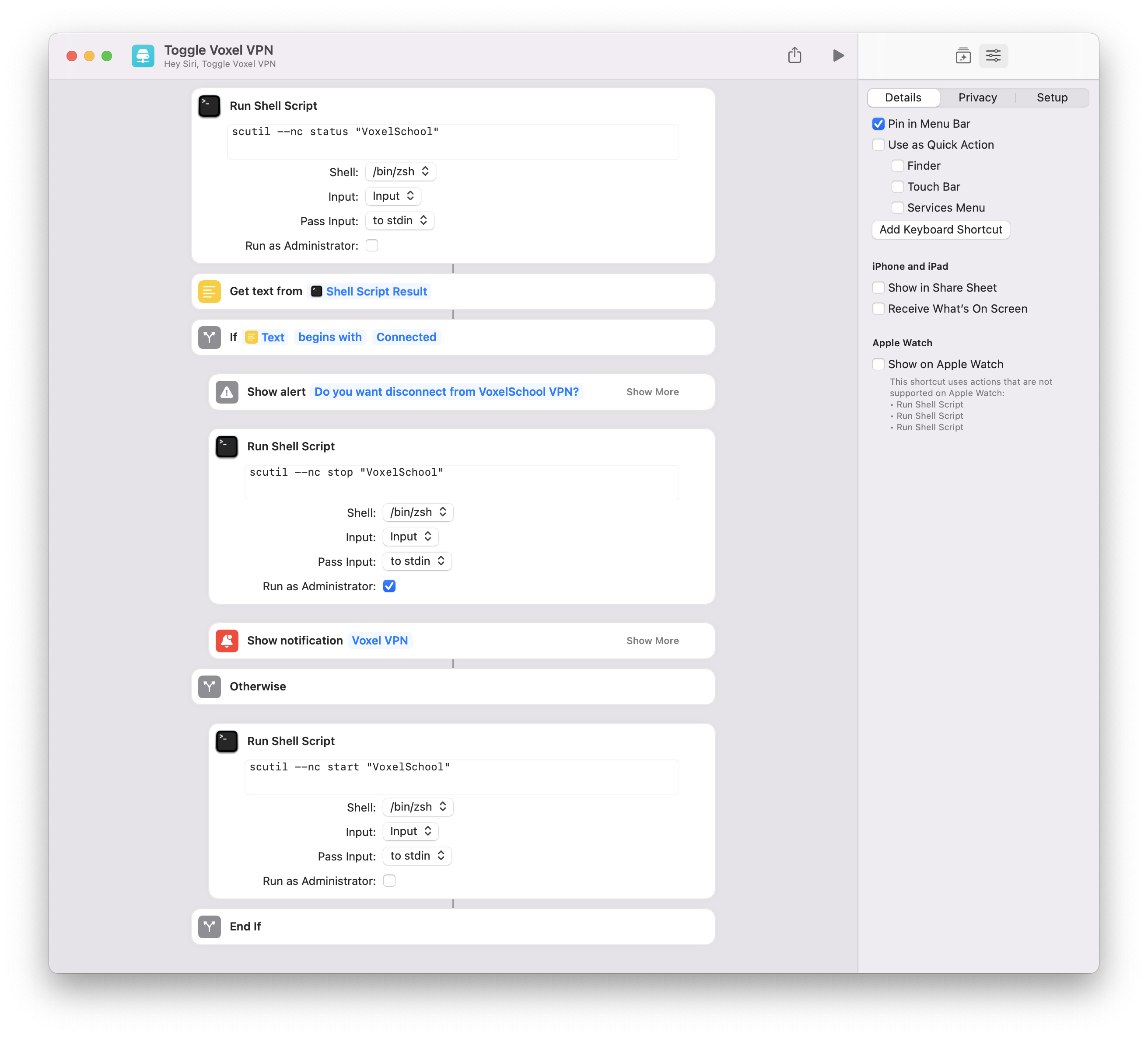 I'm trying to build a script to connect to a network (School VPN) already configured in System Preferences.
