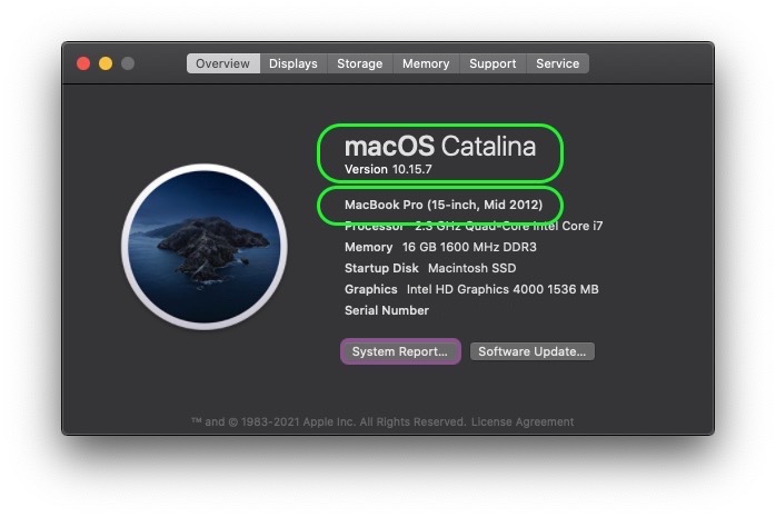 If you click the Apple menu > About This Mac you will be rewarded with a graphic that specifies this most helpful information.