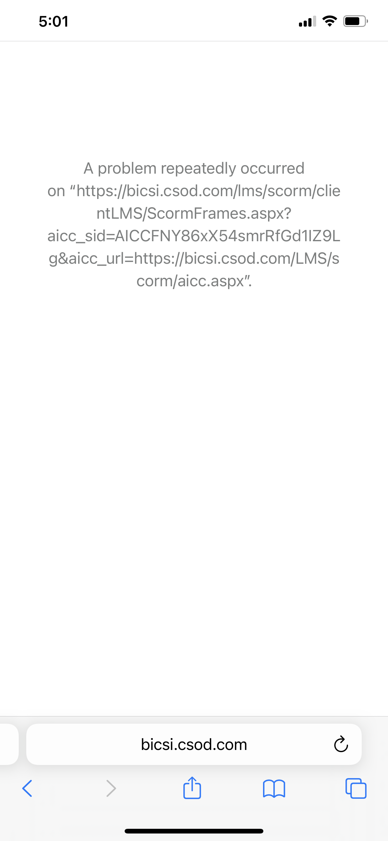 Issue with BICSI CONET learning application “Cornerstone 14.1.2.13 Powered by Cornerstone OnDemand, Inc.”