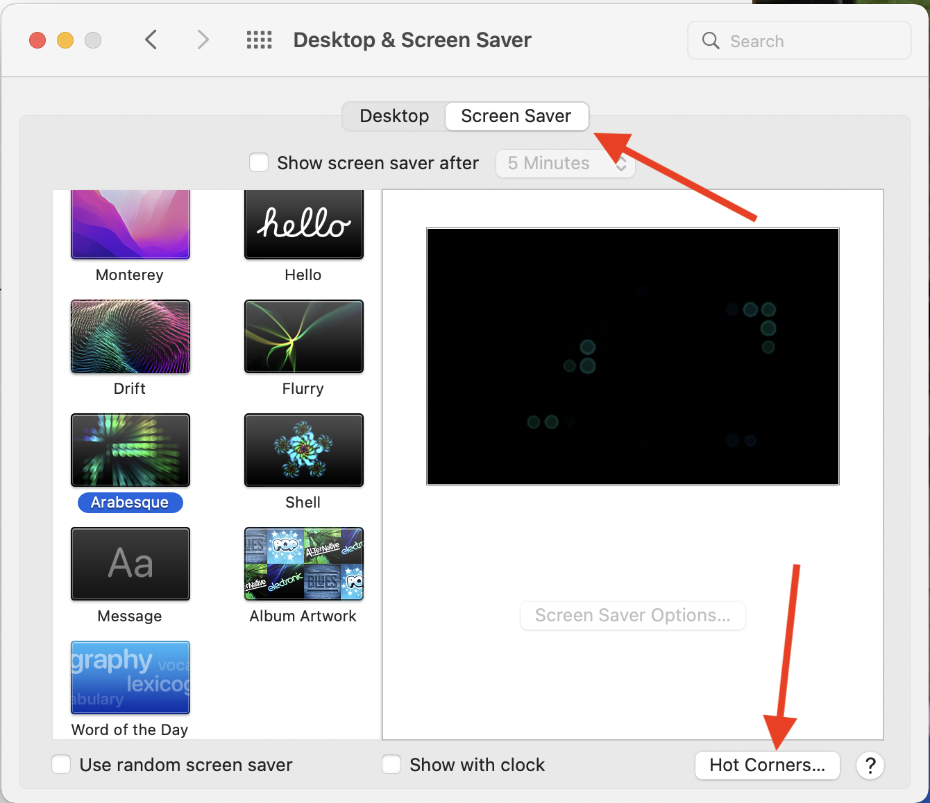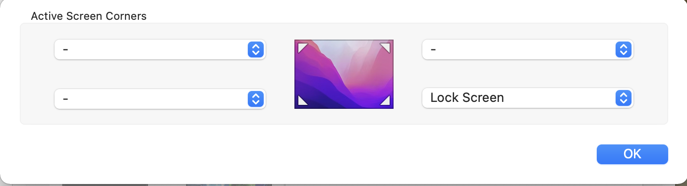 then choose an "active screen corner". click the blue "up / down" arrows.
