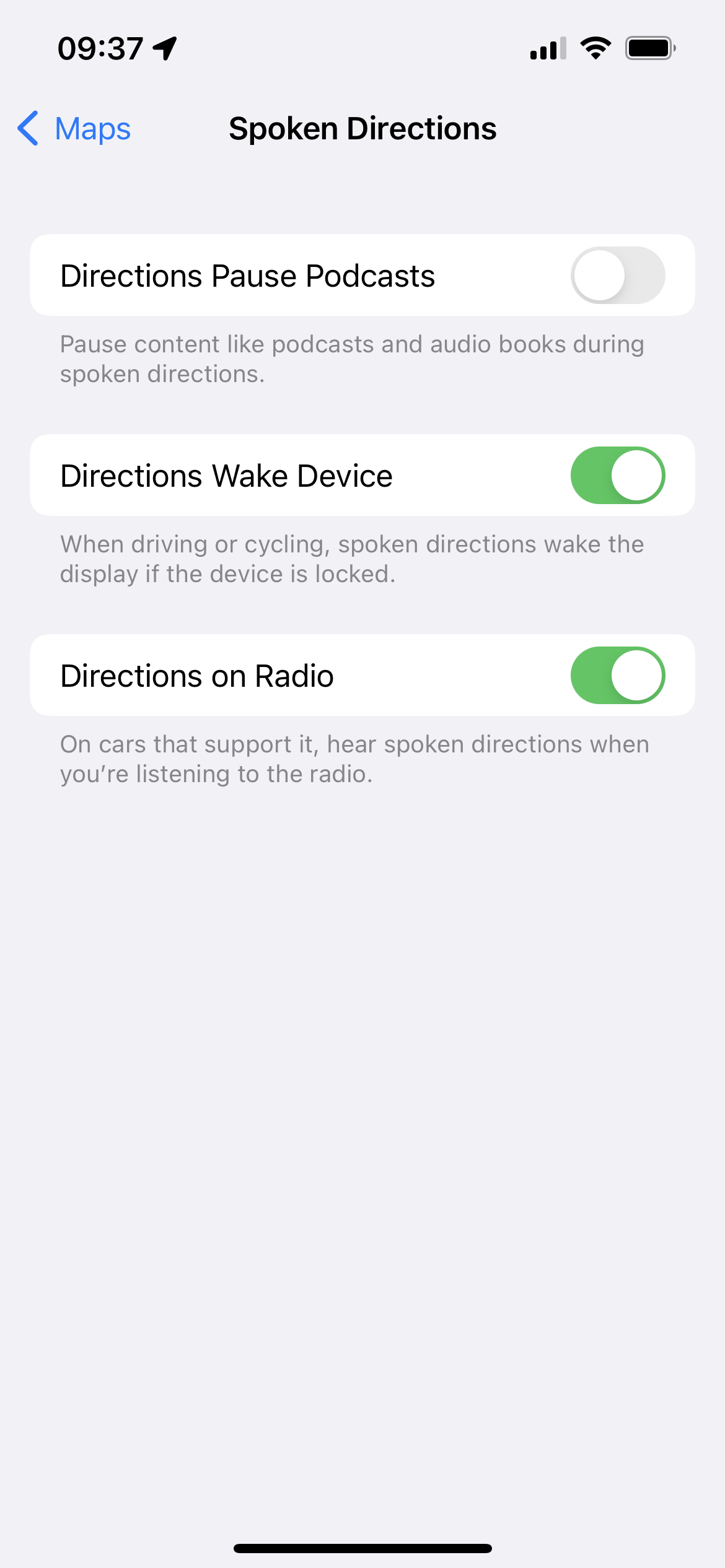 Thanks for that info and for choosing the Apple Support Communities. If we understand correctly, you are unable to get audible navigation prompts when using the Maps app in your car. To help with this, check your spoken directions settings and also that the silent switch isn't engaged and test your issue again: