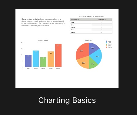 I have a Numbers spread sheet, 4 columns of information/data. I chose one column of data, select the chart type and it plots that data as the Y-Axis.