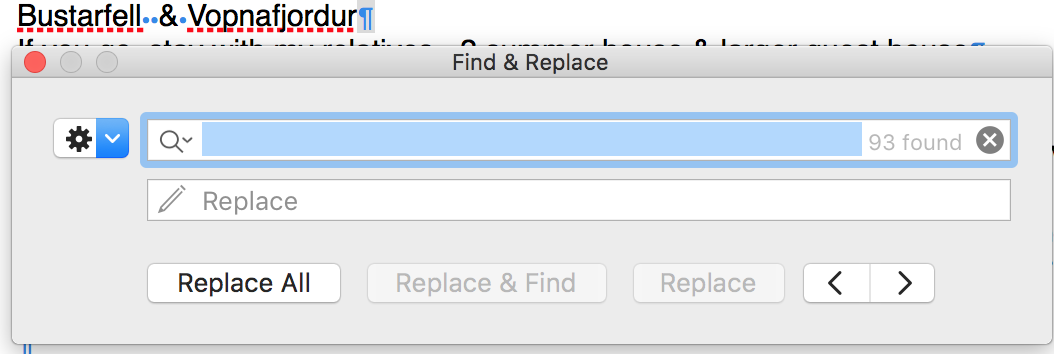 I've just pasted a long bit of column-width text from a web page into a new Pages document. Ealech line from the original is now formatted with an invisible paragraph break. I'd like to remove all of those particular invisibles, but I can't get Find/Replace to accept a copy/paste of the paragraph symbol - instead it highlights all of the "dot" format symbols that create the spaces between words. Would be grateful for any/all help.