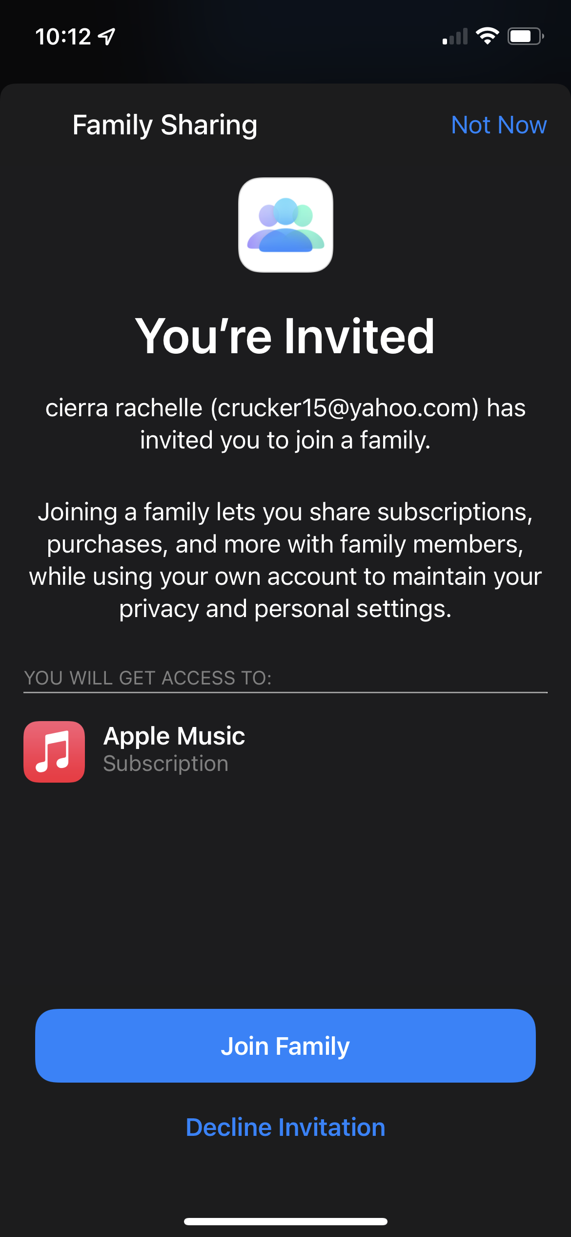 Hi, I want to access Apple Music with my family sharing plan, but it is not letting me , instead it’s wanting me to pay when I did not have to do this before
