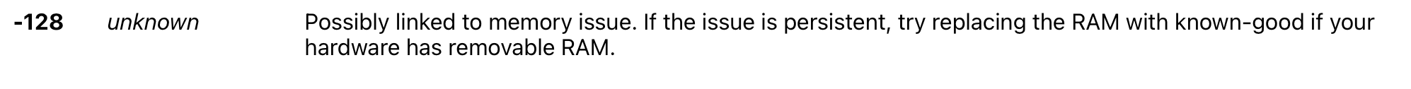 2021-11-30 10:40:00 -0600 ShutdownCause           SMC shutdown cause: -128: