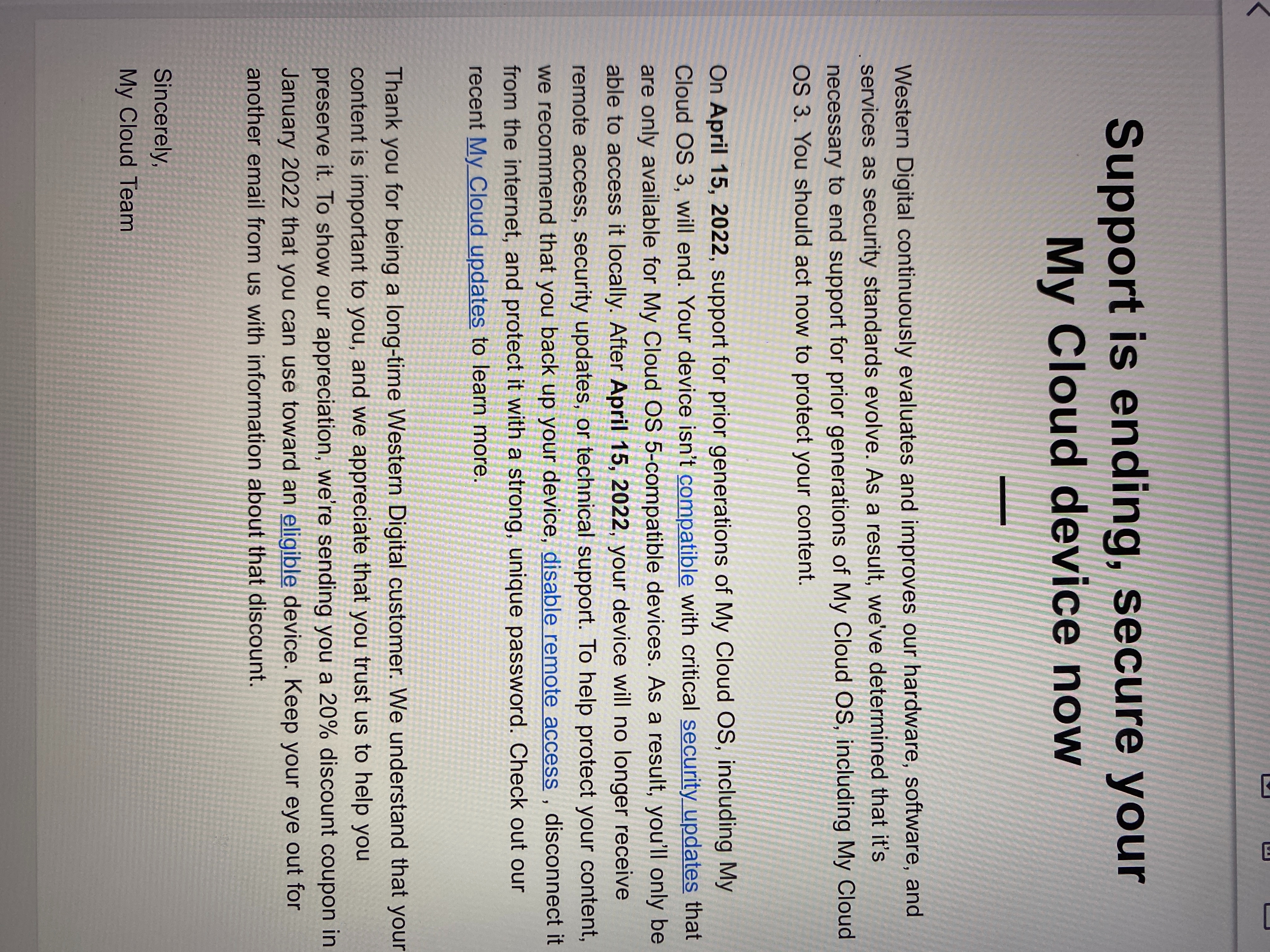 Apple never sends no such messages to any of its product user base on what products will, or will NOT, be unsupported in the future.