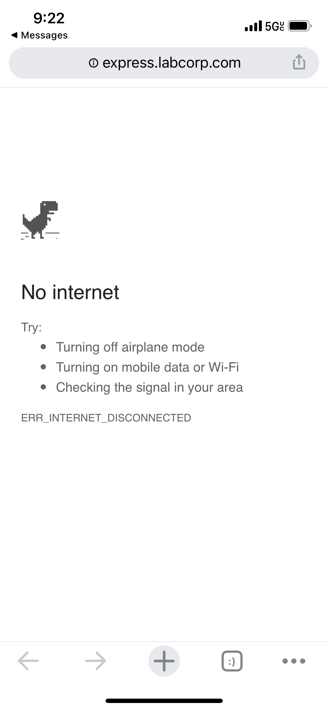 Whenever I try to open chrome/safari via a link from email or text I get this error message unless I’m connected to wifi. I can open chrome/safari and search just fine but I cannot open links. It’s so frustrating. Any idea?