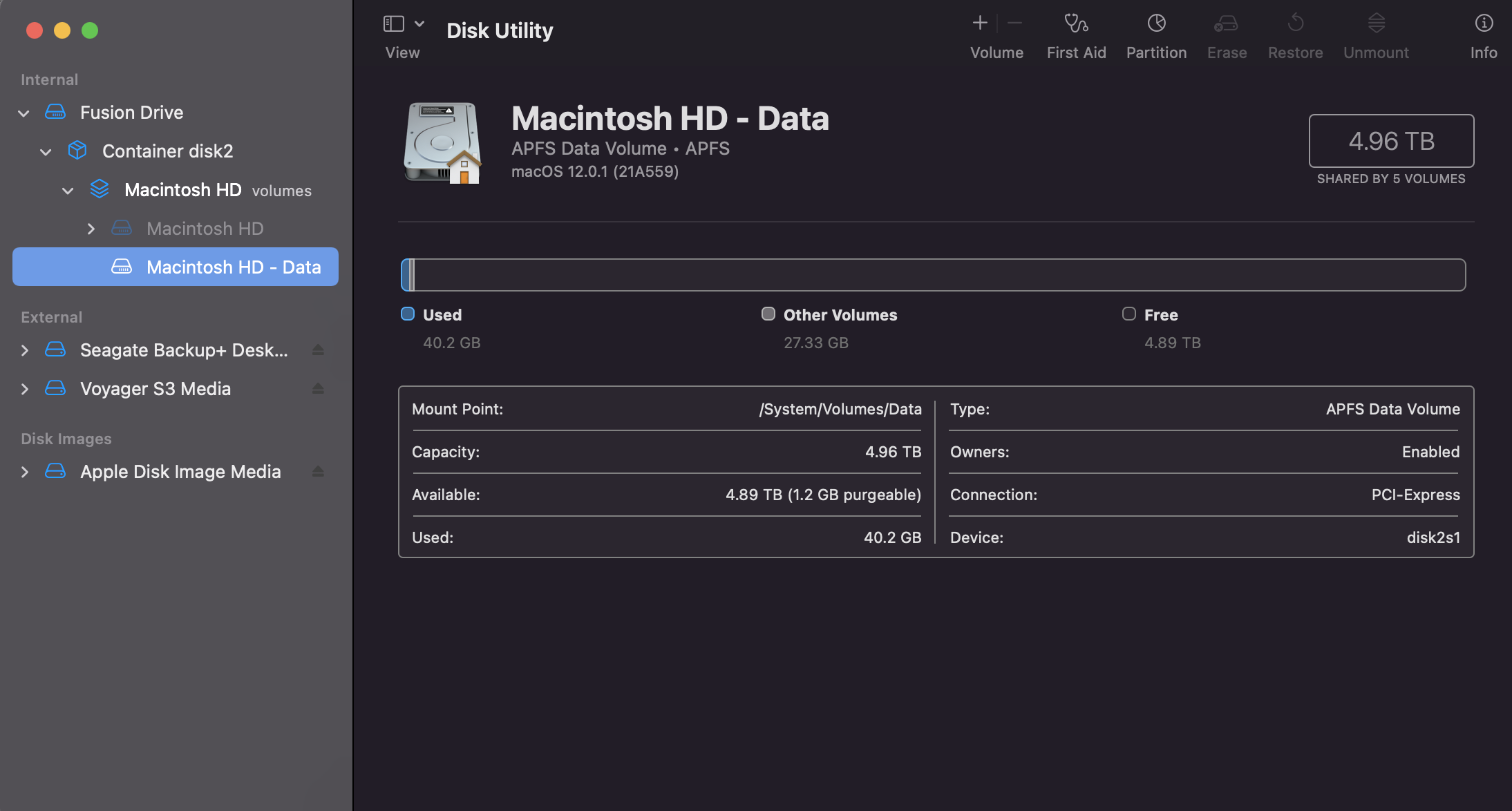 I have a new (refurbished) iMAC with a custom setup. I asked for a 1 TB SSD to run my OS and Programs as well as my working projects and a 4 TB HDD for storage. When I received the machine the Disc Utility shows me I have one volume(Drive) 4.98 TB available. It's the weekend so I cannot call the company to find out why or what they did.