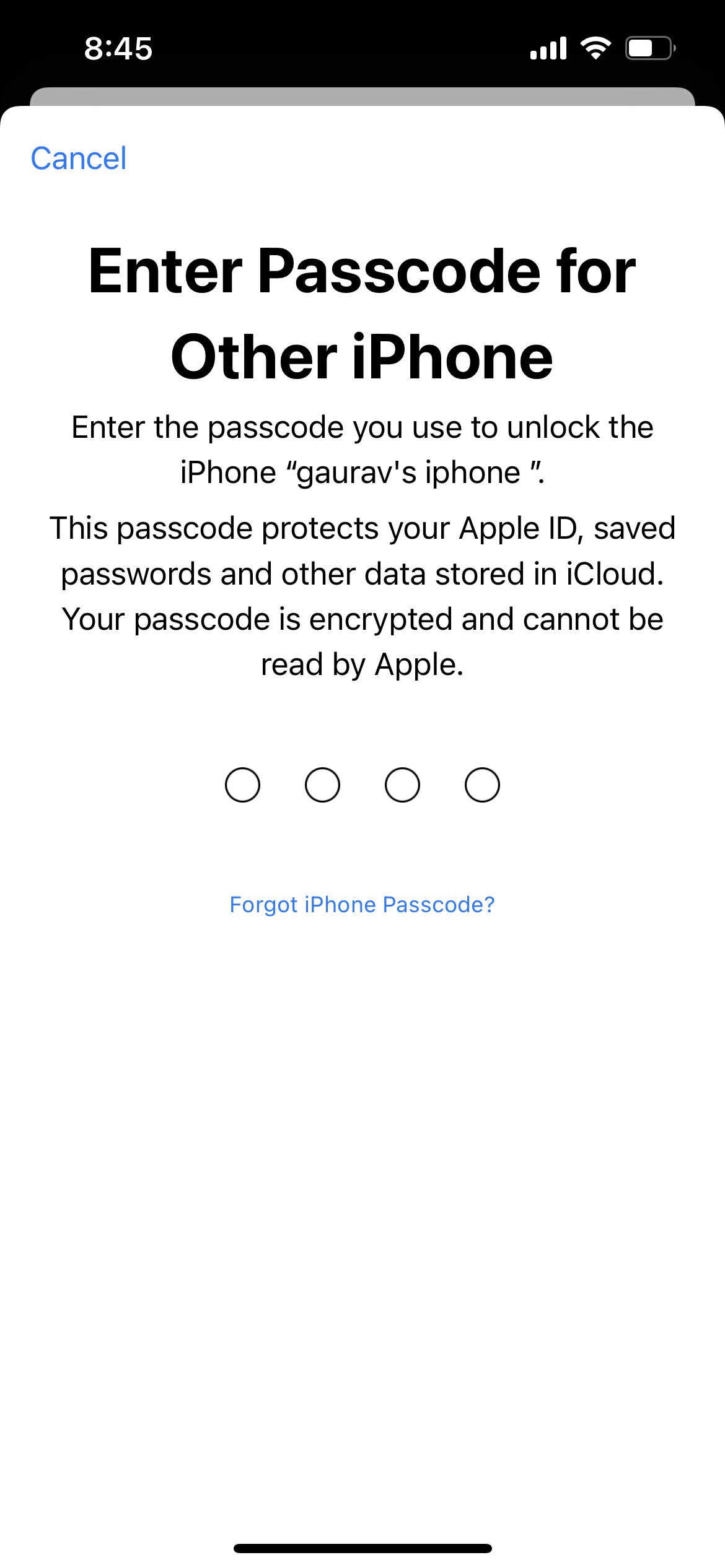 today is the day after 13days when i received a mail to create new password I'm struck here on a step asking me to enter passcode of the handset iphone 6s i used to operate few years back to recover my icloud data