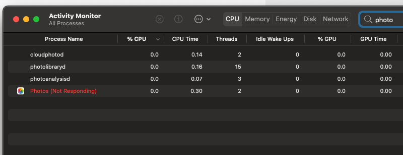 I can no longer open Photos on my Mac using Big Sur (11.6.1)