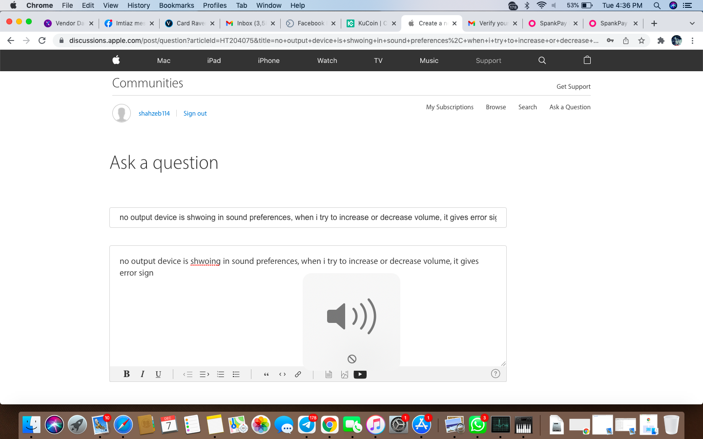 no output device is shwoing in sound preferences, when i try to increase or decrease volume, it gives error sign