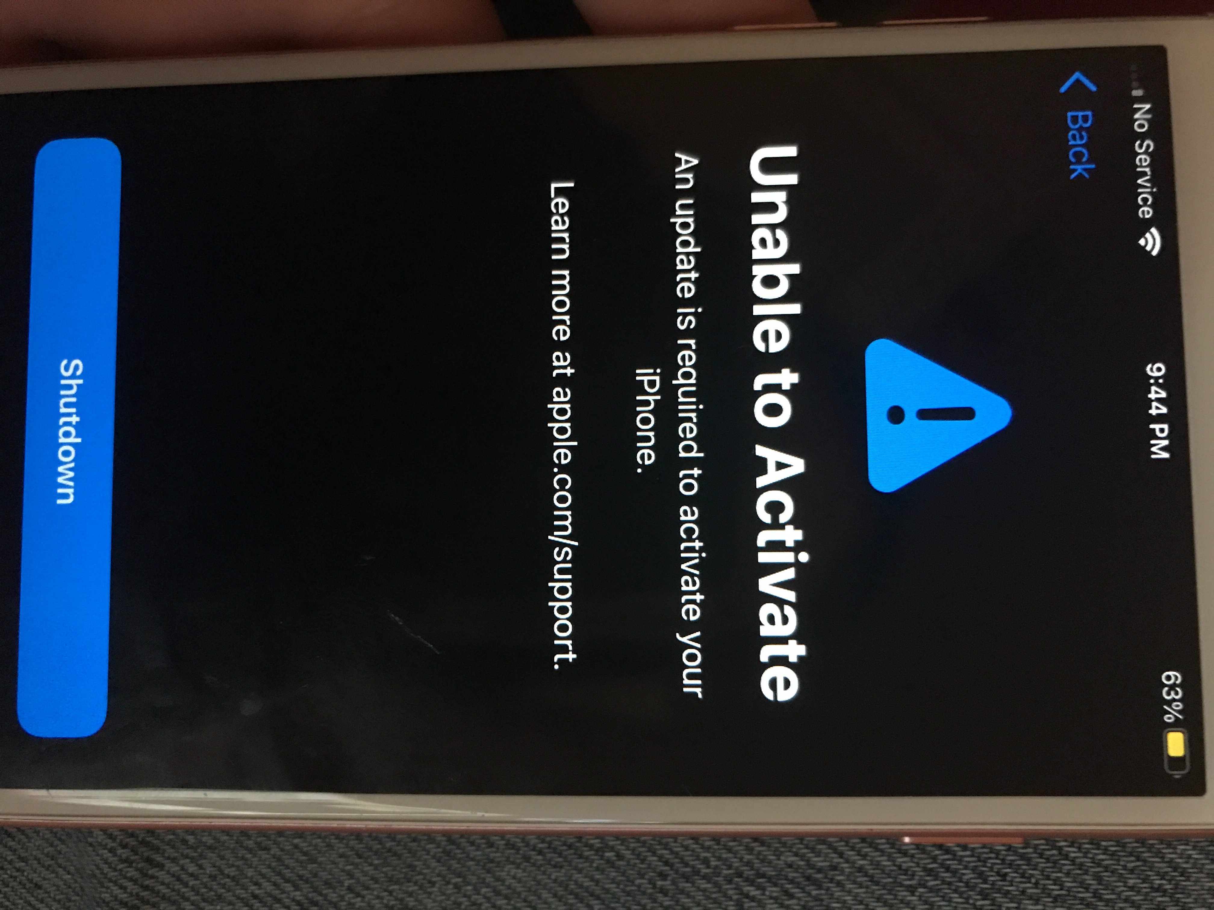 "I phone stuck on activation screen: I have my little cousins phone and she accidentally reset the phone so it’s on the very beginning page and so I put the language and country with Internet and it takes me to a page that says unable to activate an update is required to activate your I phone"
