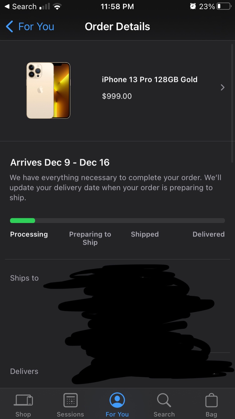 okay so i got my iphone 13 pro(128)(gold) on the first and it still saying order in progress, BUT ITS THE 9. so im asking if anyone is having the same experience.... im depressed😔