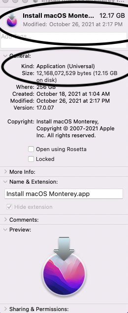 C - Interesting on file size. Refer to picture below of the Full Installer of Monterey 12.0.1 - 12.17 GB size