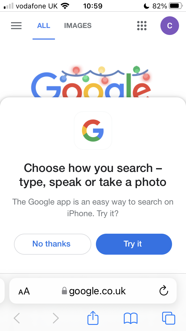 hi, since upgrading IOS every time I start a new safari Google session it asks me to try the new app. How do I turn this off?