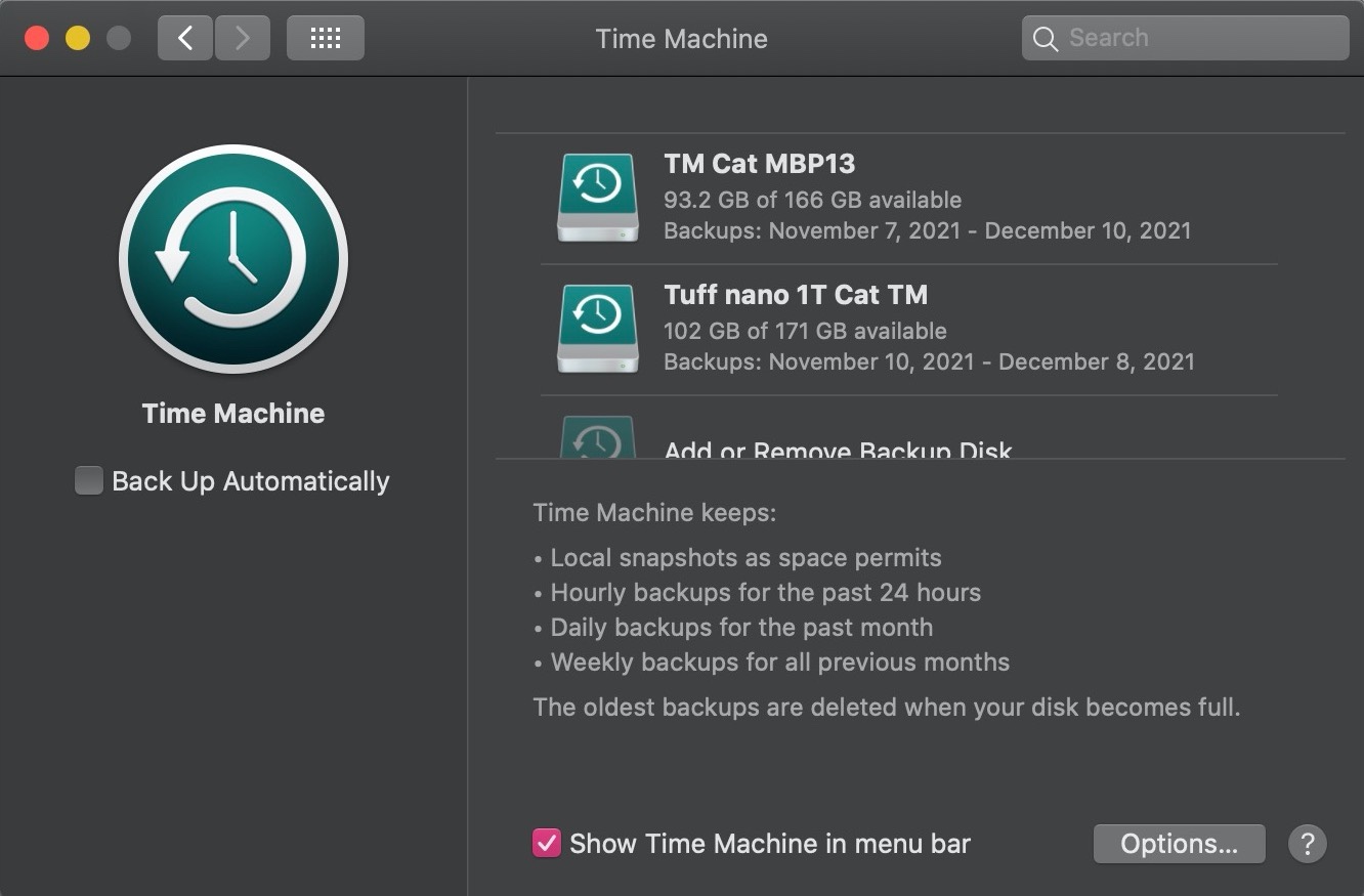 The reason I ask is I recently needed to revert back to Mohave from Monterey. In my first attempt, I tried restoring using my CCC (Carbon Copy Cloner)bootable backup. In Recovery Mode, The system would not let me use the CCC Clone so I ended up restoring from TM.