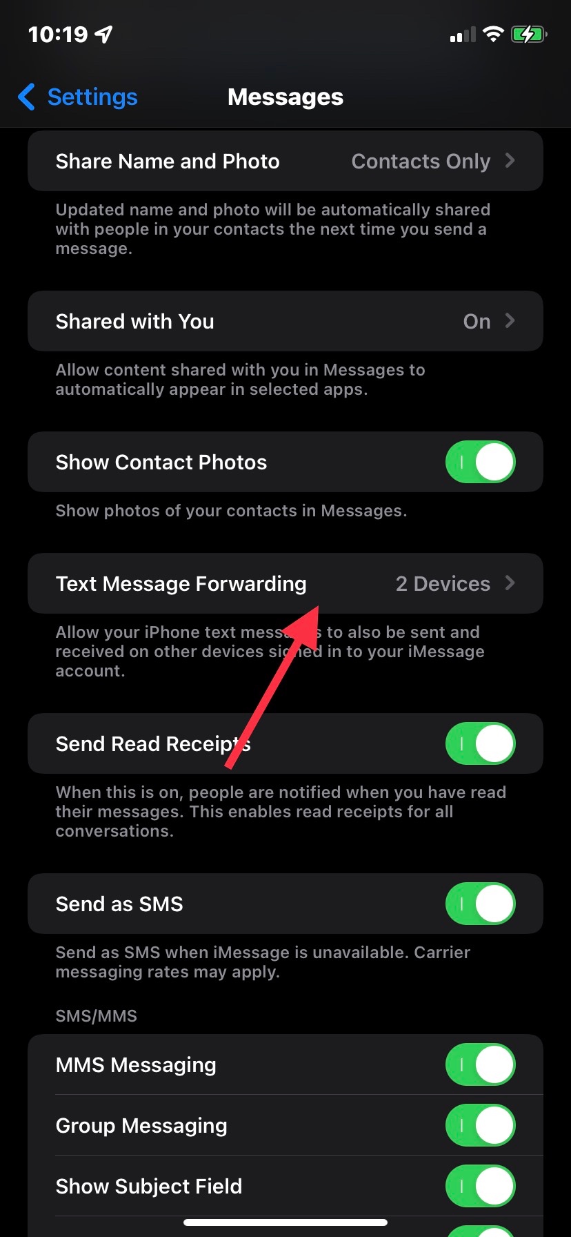 Since forever, if somebody sent me a text message, it would appear in Messages on all three of my Apple devices, iPhone, iPad and iMac. Tonight, however, texts are only appearing on my iPhone.