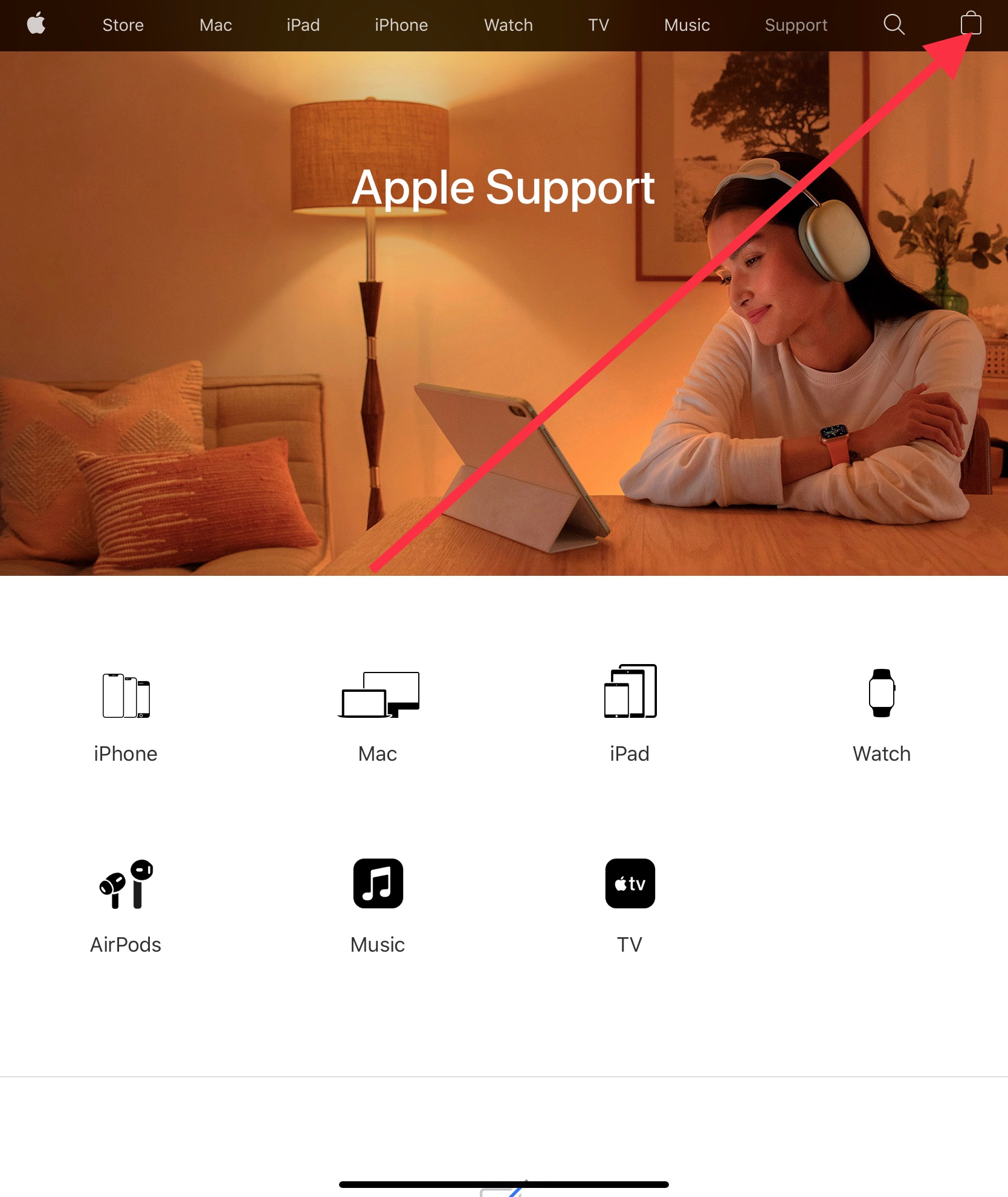 From Apple’s Support area, click this symbol.