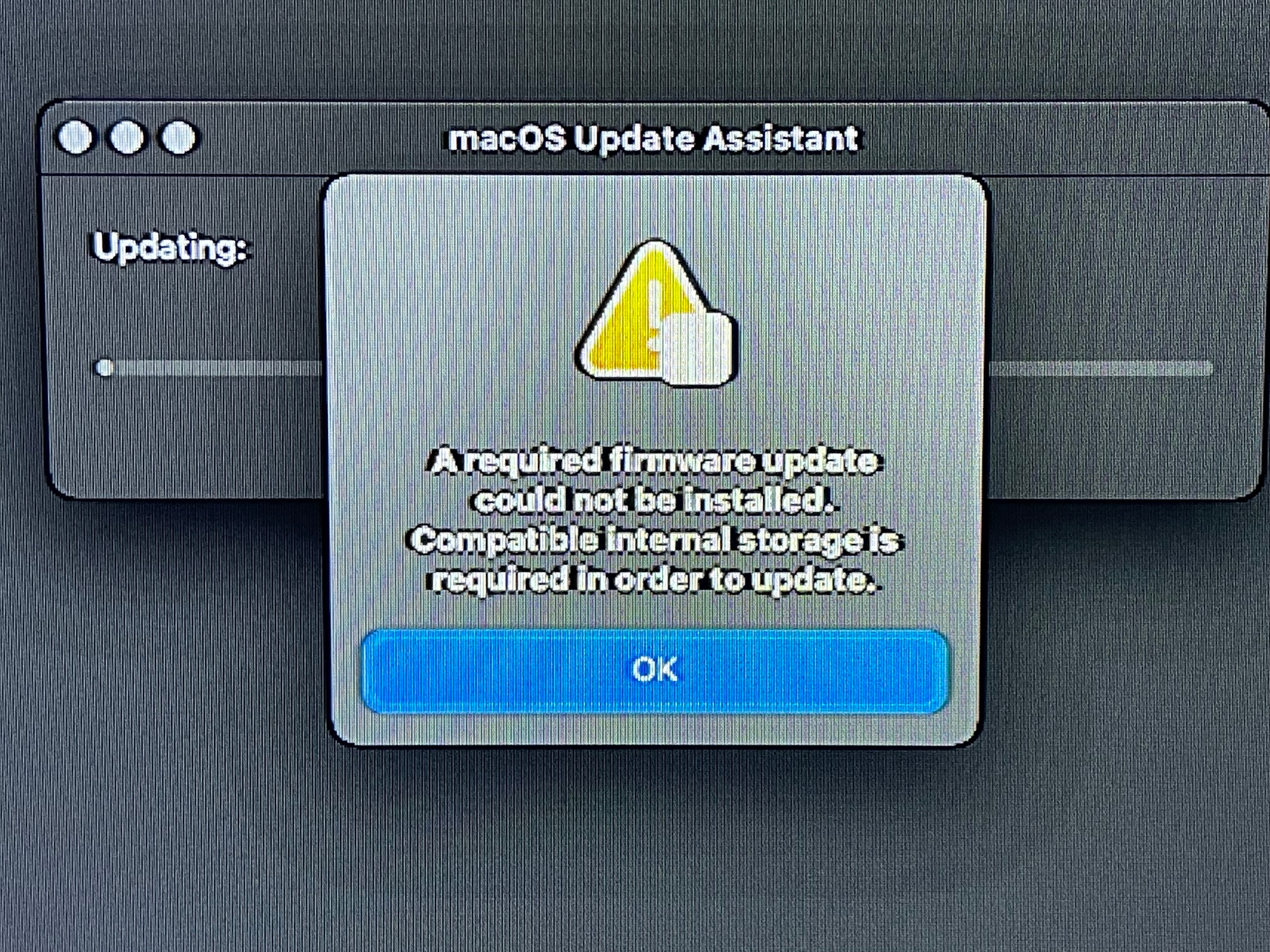 A required firmware update could not be installed.