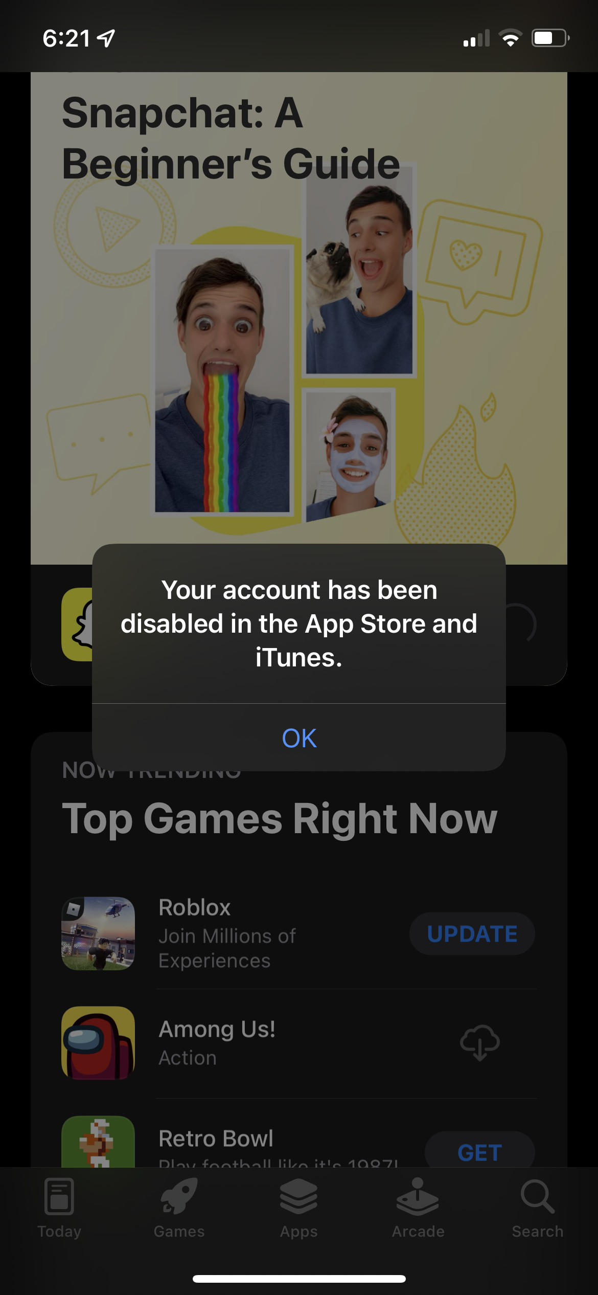 every time i go to download or update an app in the app store it says “your account has been disabled in the app store and itunes” and i don’t know how to fix it