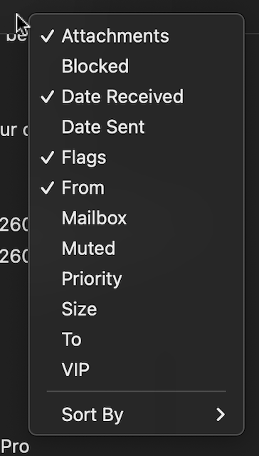 how do you find the header column in mail on iMac, I'm trying to retrieve my flagged emails after upgrading to os 12