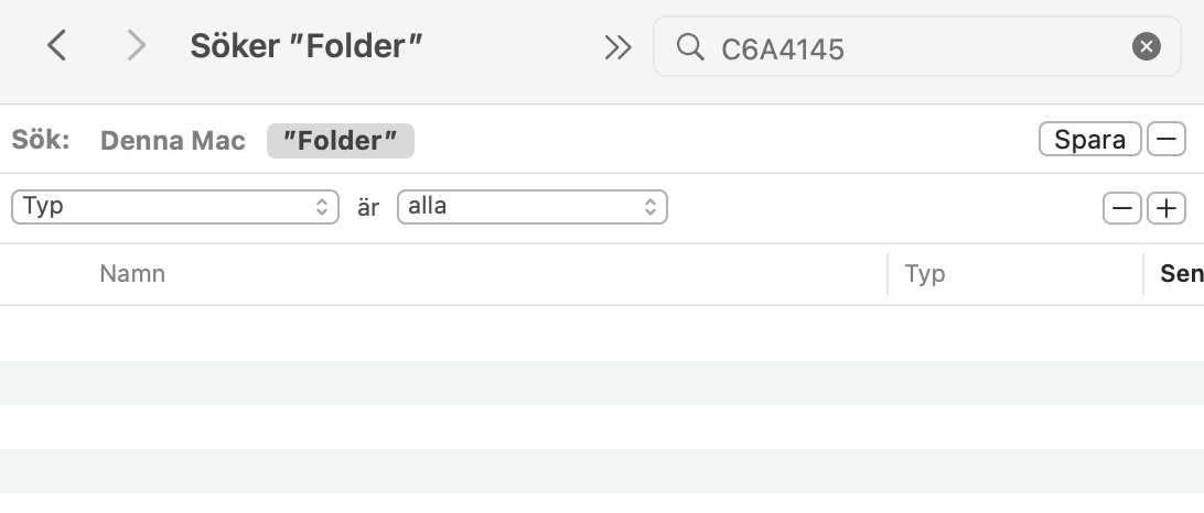 See screen shot (in Swedish, put you'll get the point). I know the file I search for is in this specific folder (named "Folder" in this example), but my search in this tab return no findings. However, If I use "search this mac" tab instead, the file will be found.