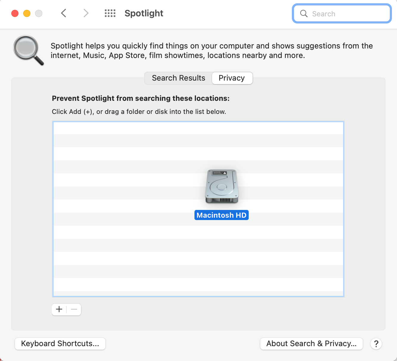 On my new MacBook Pro I can no longer search in Folder. A search in the whole mac is ok, but not when I restrict the search to the folder I am currently in. Why?