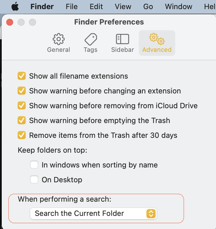 On my new MacBook Pro I can no longer search in Folder. A search in the whole mac is ok, but not when I restrict the search to the folder I am currently in. Why?