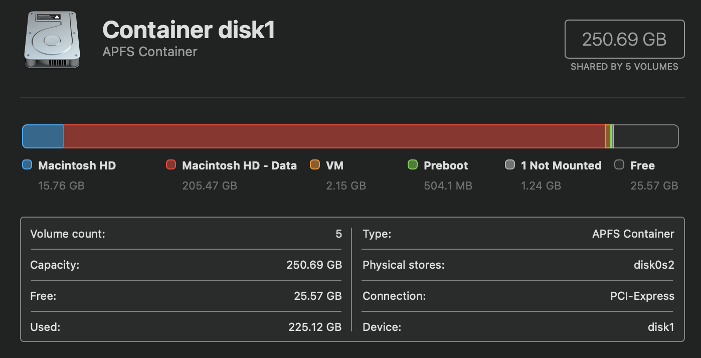 However, Mac released a 2018 15" pro model with 250 GB of storage hardwired in, so it's what I have to work with.