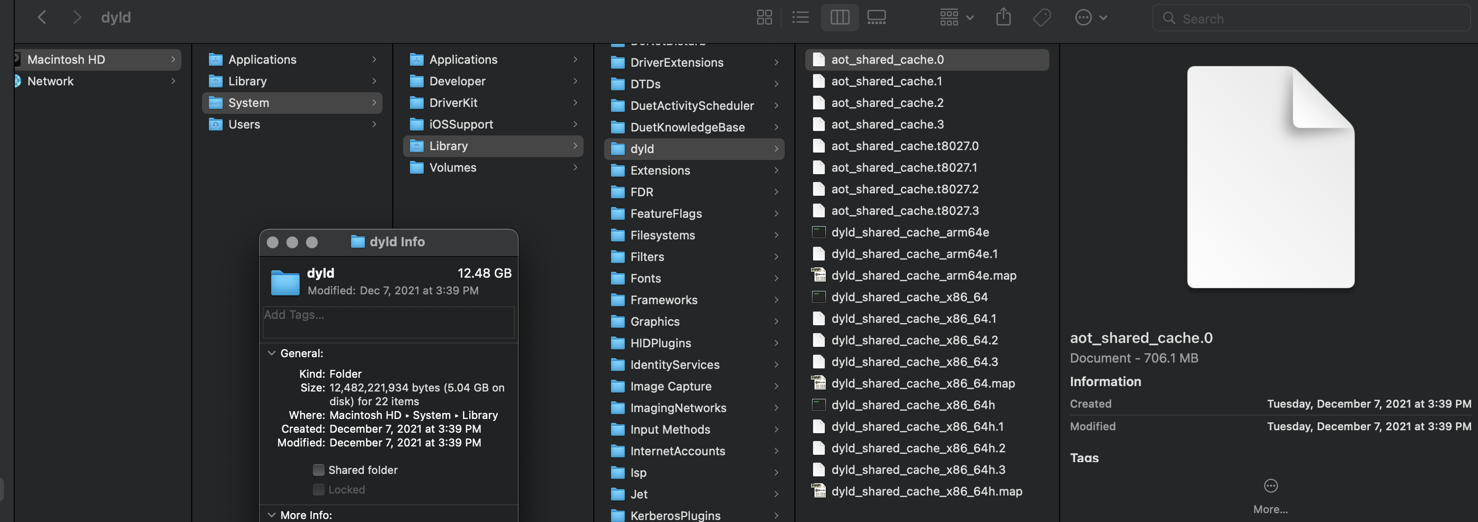 or creating redundant dyld files (hence the .1 .2 .3 iterations which I haven't seen in other's snapshots.)