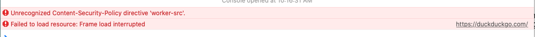 Cannot load https://www.duckduckgo.com using latest Safari update. It's also possible that DuckDuckGo changed their home page at the very same time.