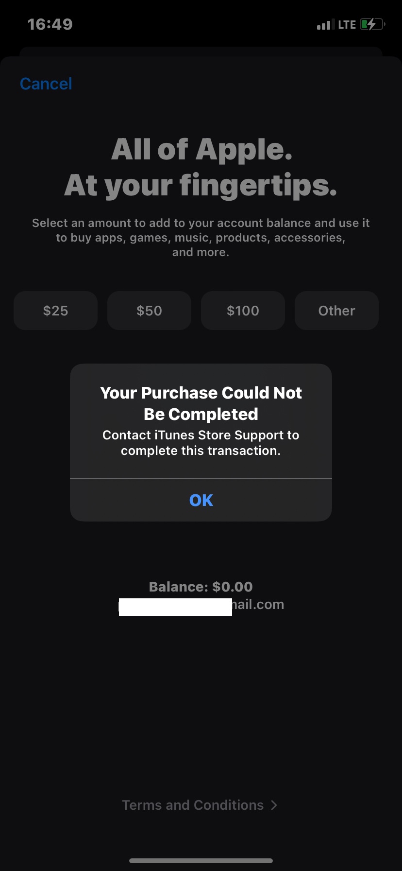 What to do when purchasing brings “Your Purchase Could Not Be Completed Contact iTunes Store Support to complete this transaction.” ?