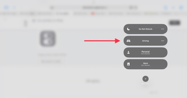 The car icon, at top-right of the screen, indicates that you have enabled the “Driving” Focus. You select the current Focus mode from the iPad Control Centre. Swipe down from the top-right corner to expose the Control Centre - then tap the Focus button: