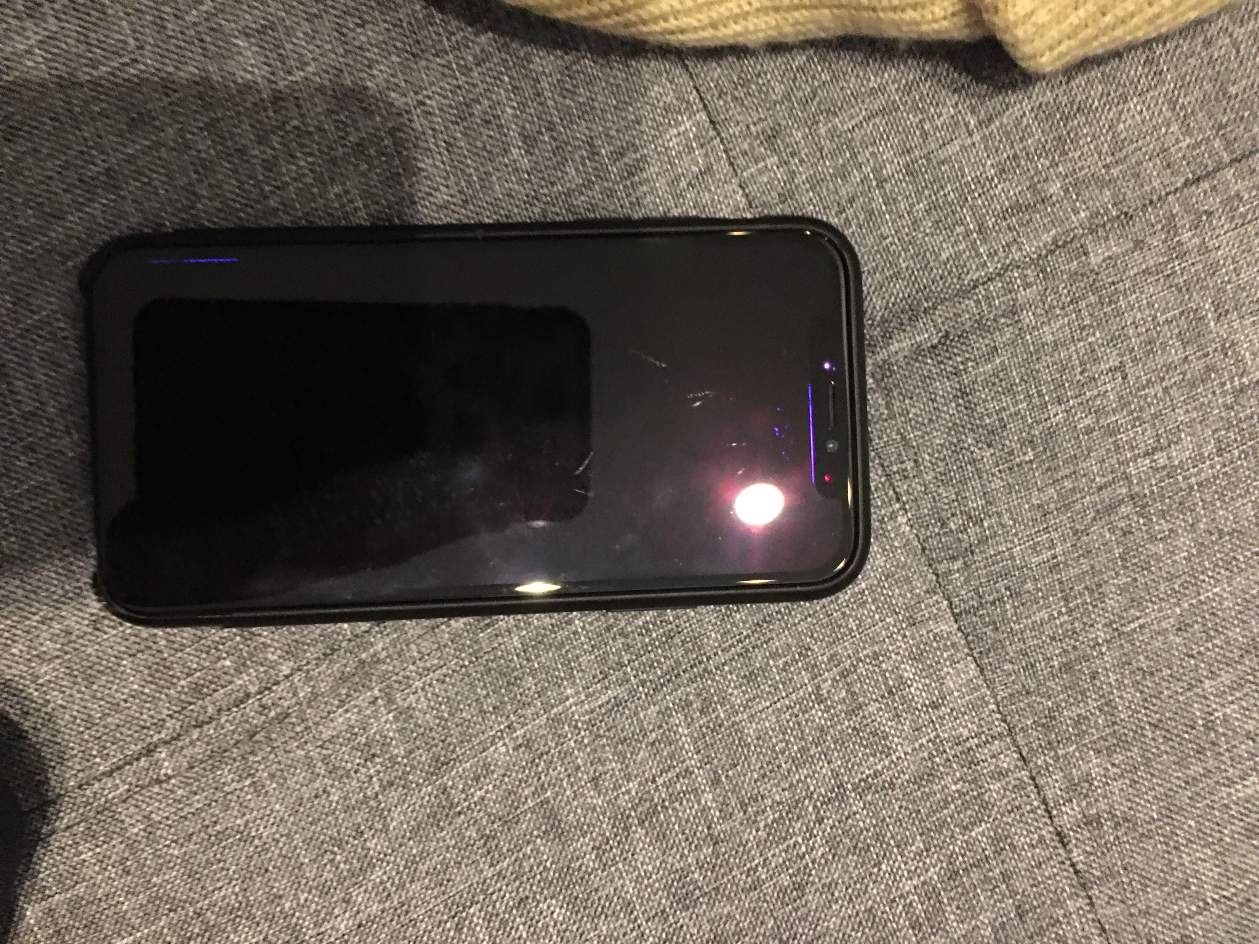 iphone x screen turned blue and has a black misted look