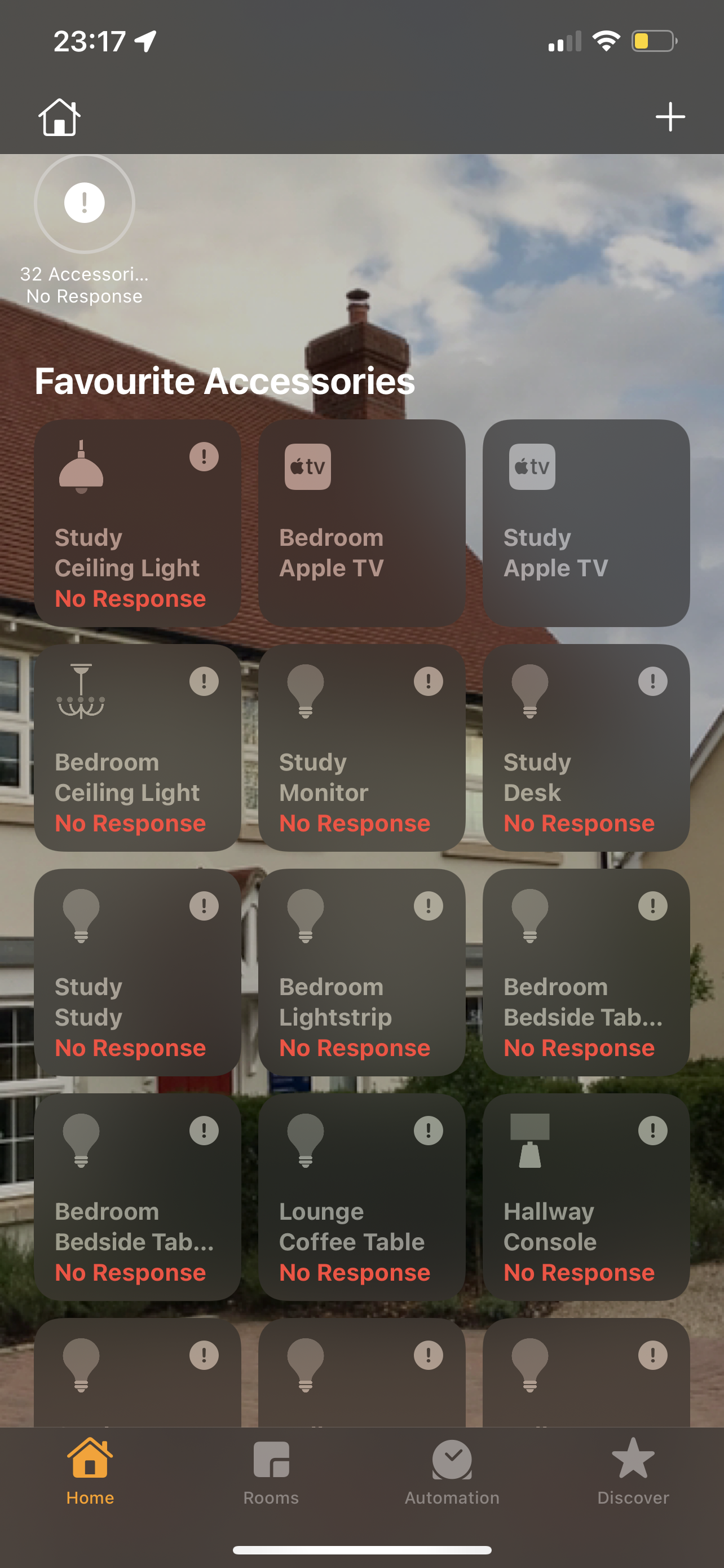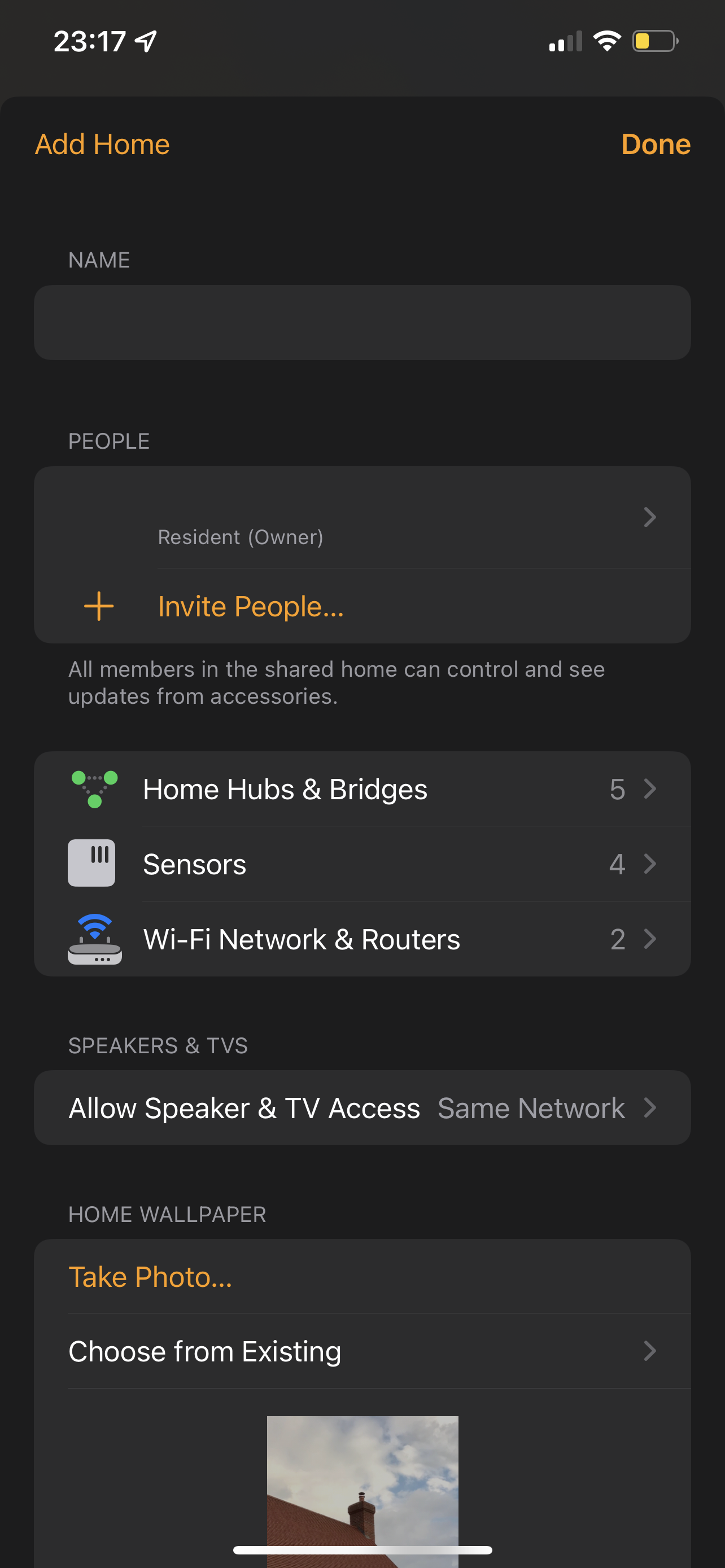 Upon opening HomeKit app, this is the view I get if the HomeHub is running on the new Linksys wireless: