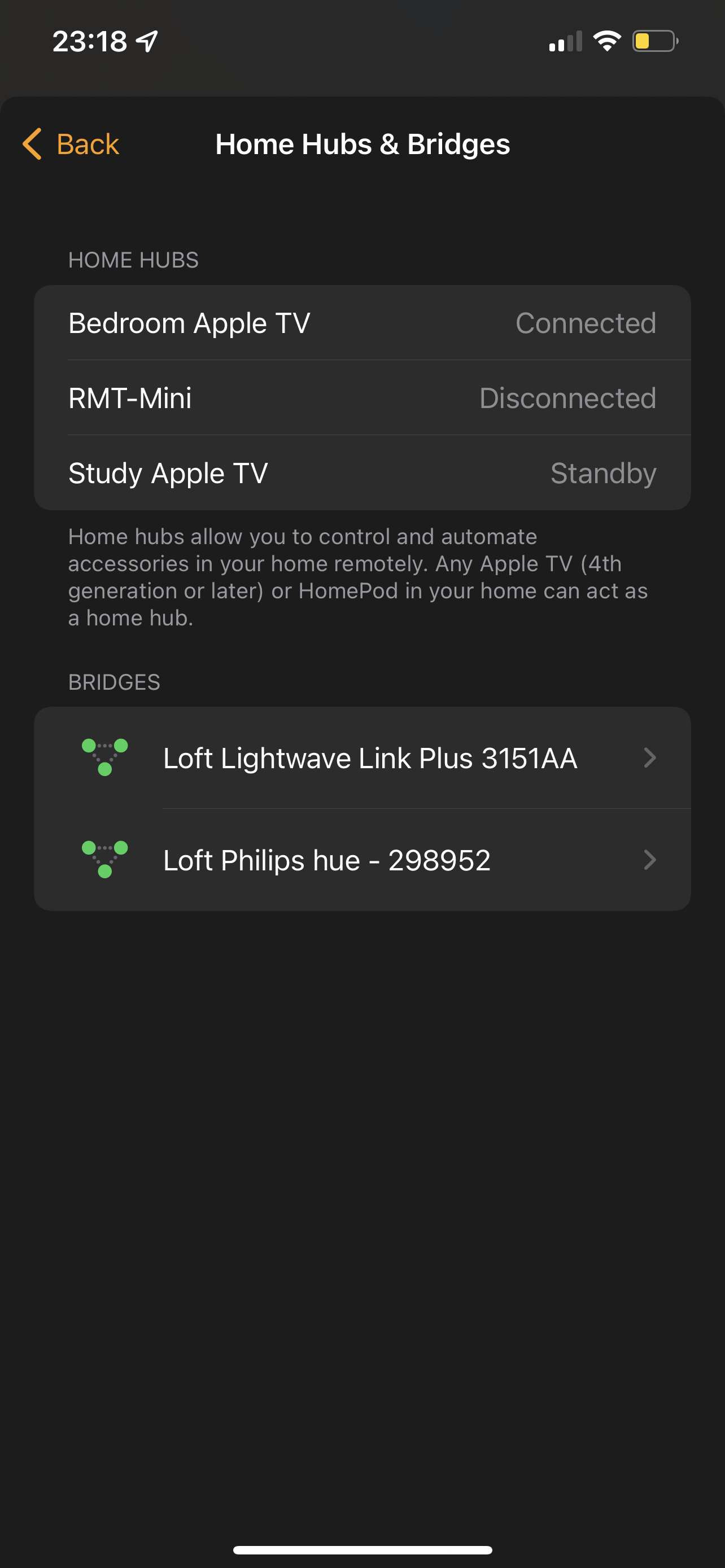 - Identified that I have three "Homekit Hubs"; an iPad and two Apple TVs in different rooms.
