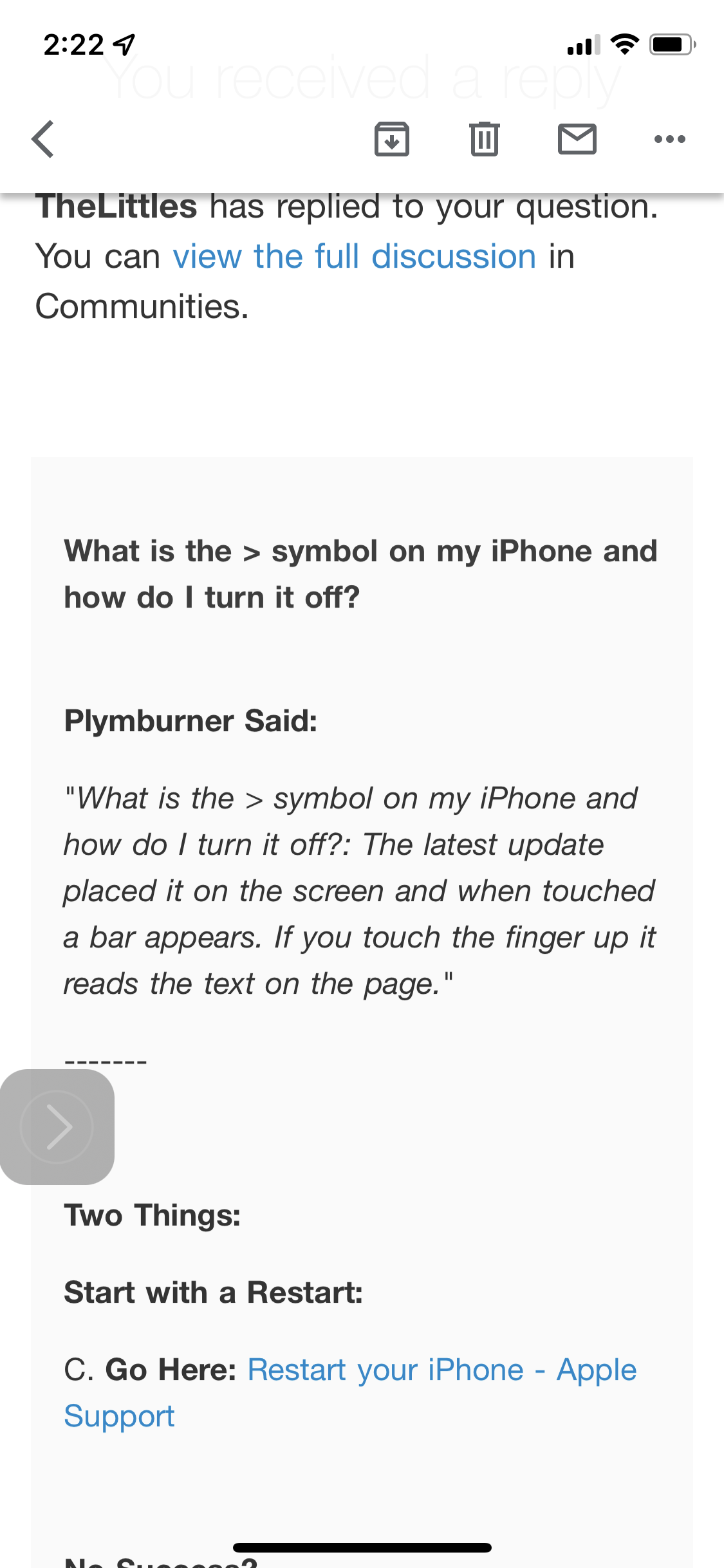 C. Go Here: Restart your iPhone - Apple Support